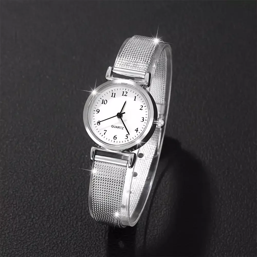 Conjunto Feminino de Relógio com Pulseiras em Prata
